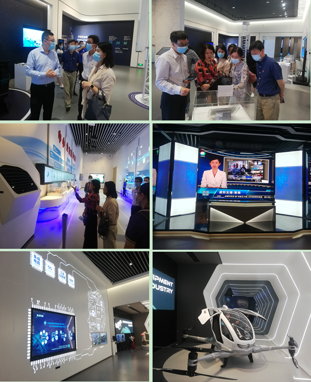 在科学城集团负责人的陪同下,卢远一行参观了初心使命实践馆展厅,深入了解黄埔区的历史文化、发展历程、区位优势以及发展现状,并现场体验了黄埔区的科技创新成果。大家一踏进展馆,就被馆内现代信息科技展品和光电声画互动技术深深地吸引,馆内包含区情沙盘区、“古老黄埔”船厅、发展寄语展区、产业集群展区、生物医药区、中小企业产品展区、区块链展区、中小企业能办大事展区、人才建设展区、党的建设成果展区等。人工智能机器人、无人驾驶汽车……通过一件件科技创新产品,一串串令人震撼的数字,使党员同志们切身体会了红色引擎下的“黄埔速度”,深刻领悟到习近平新时代中国特色社会主义思想立根铸魂的思想力量,大家对未来充满了期盼和憧憬。