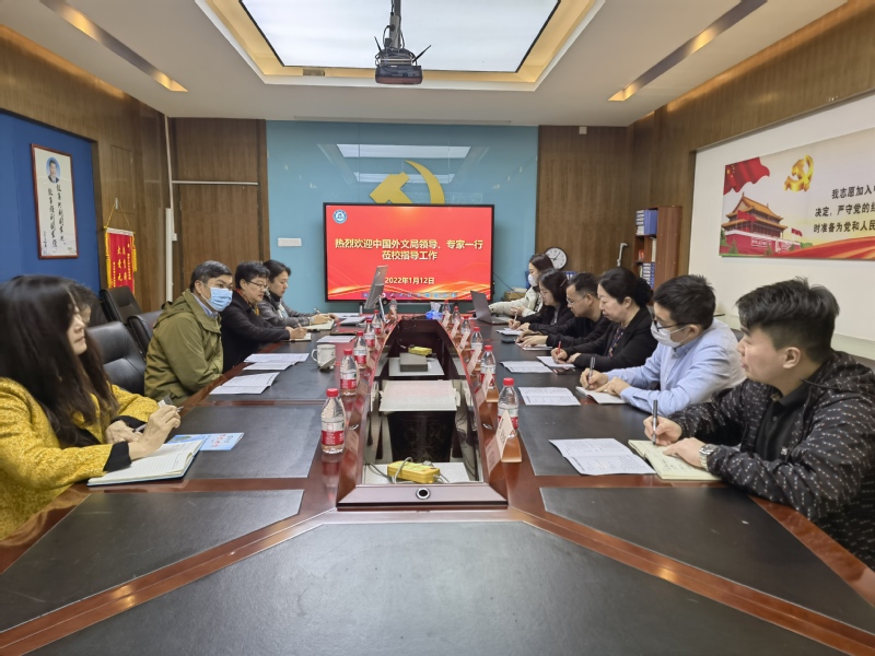 1月12日,中国外文局机关党委常务副书记、人事部主任、全国翻译资格考试办公室主任闵艺一行六人莅临beat365调研指导工作。学校党委副书记夏泉出席座谈会并讲话。