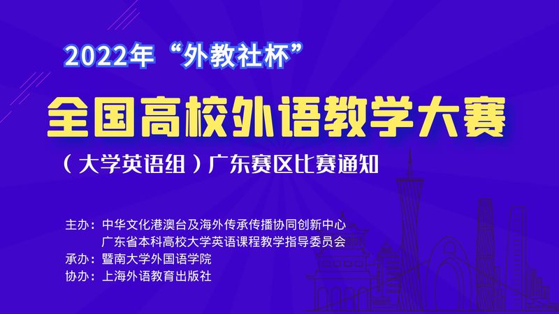 为推进我省本科高校的英语教学改革,不断提高英语教师育人素养、学科素养、信息素养和教学素养,探索我省大学英语课程建设和教学改革新思路,经研究决定举办2022年“外教社杯”全国高校外语教学大赛(大学英语组)广东赛区比赛(以下简称“省比赛”),并在此基础上推荐选手参加全国高校外语教学大赛。根据全国大赛章程(详见附件1)并结合实际,现将本次比赛有关事项通知如下: