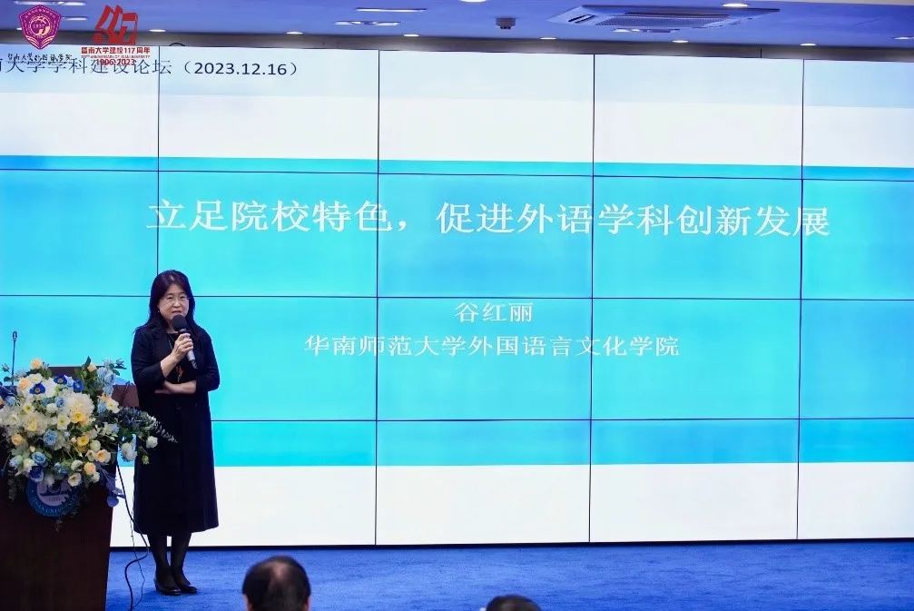 华南师范大学谷红丽教授表示,新文科理念为外语学科的创新发展带来新思路,并探讨了“固本”与“创新”、“共性”与“特色”的关系,为避免同质化建设,外语学科应该立足各自院校特色,确定学科发展方向。她介绍说,华南师范大学外语学科依托学校师范特色和学院传统优势学科方向,以外语教育技术系列特色课程和凸显师范特色的实践课程建设为重要抓手,力图实现跨学科发展和三全育人目标,促进外语人才培养质量提升。