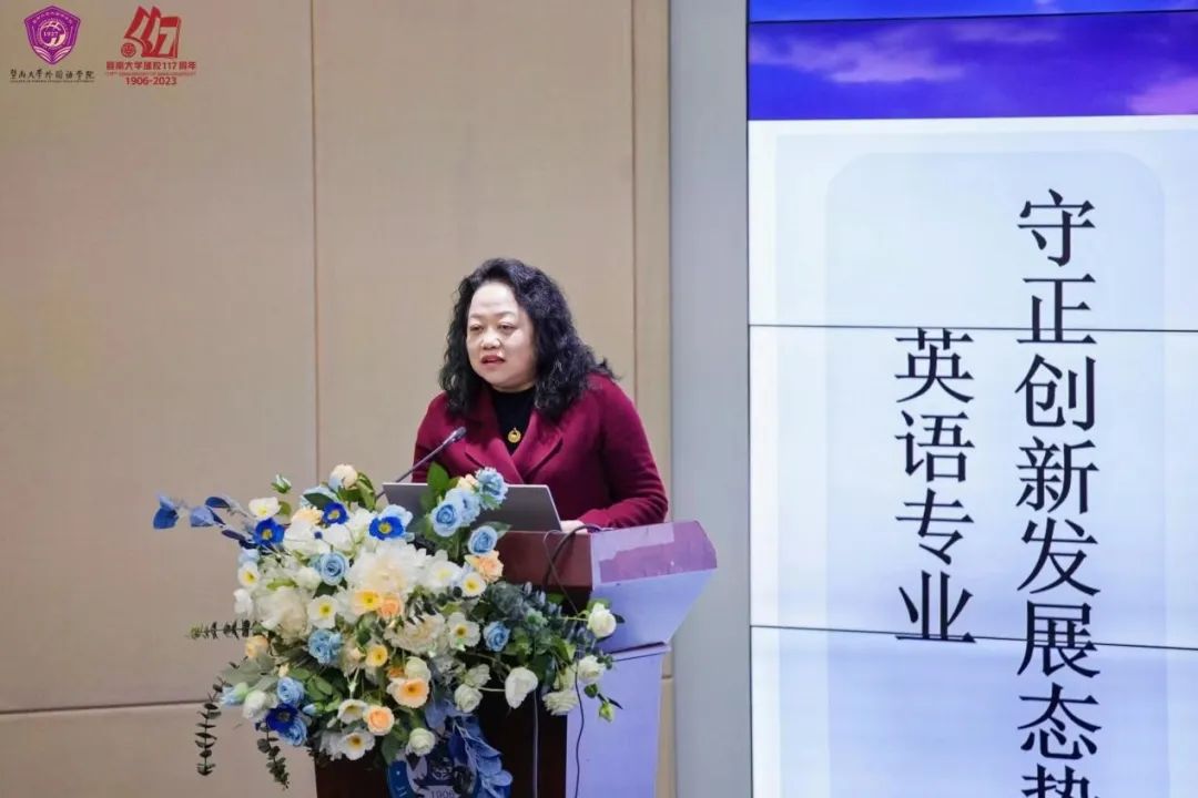 beat365亚洲体育官方网站蒲若茜教授通过介绍beat365亚洲体育官方网站外语学科的历史沿革、人才培养、课程建设、以及国际化路径,阐述了“外语学科发展与人才培养的守正与创新”。她回顾了beat365亚洲体育官方网站外语学科的发展演变,介绍了beat365亚洲体育官方网站“侨校+名校” 的特色发展战略,以及在人才培养、课程建设、国际化人才培养方面取得的诸多成效。她表示,外语学科发展要结合实际需求,更新课程内容,采用多元文化交流和实践应用,以实现外语教育与国际化人才培养的双重目标。