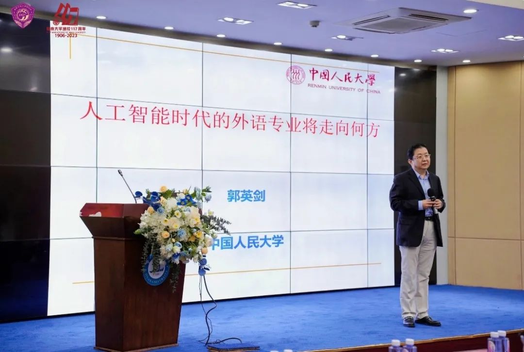 中国人民大学郭英剑教授从人工智能的最新产品ChatGPT谈起,结合美国专业调查及中国专业发展情况,引用系列文章探讨其对外语专业及人才培养的思考。郭英剑教授指出,在中国的语境下,在课程思政的背景下,应牢记外语专业的荣耀。针对“外语教育:培养什么样的人?宗旨何在?”这一问题,他指出“外语专业,要培养的是——跨文化跨学科复合型国际化的外语人才”,学好外语至关重要,讲好中国故事至关重要,讲好全球故事至关重要。