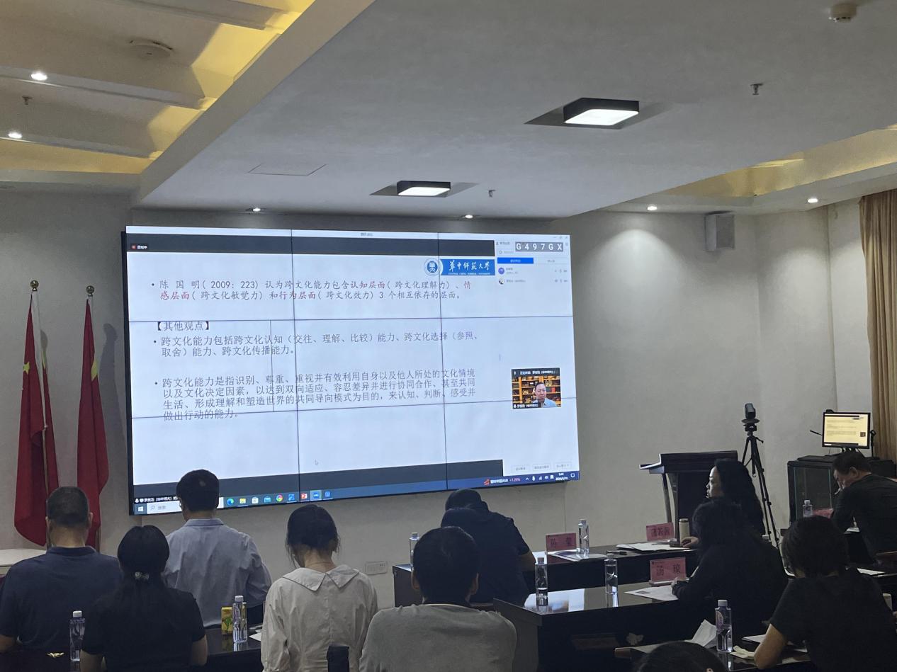 华中师范大学beat365亚洲体育官方网站院长罗良功教授剖析了“外语专业人才的跨文化能力培养”,强调跨文化能力本质上是一种国际传播能力,是外语专业人才必须具备的核心能力。他提出,,也是中国发展所必需的国力,在共建“一带一路”、推动一带一路倡议和构建人类命运共同体理想的进程中当今 ,培养外语专业人才跨文化能力尤显重要,并他提出了详细具体的培养体系、教学模式等创新思路。