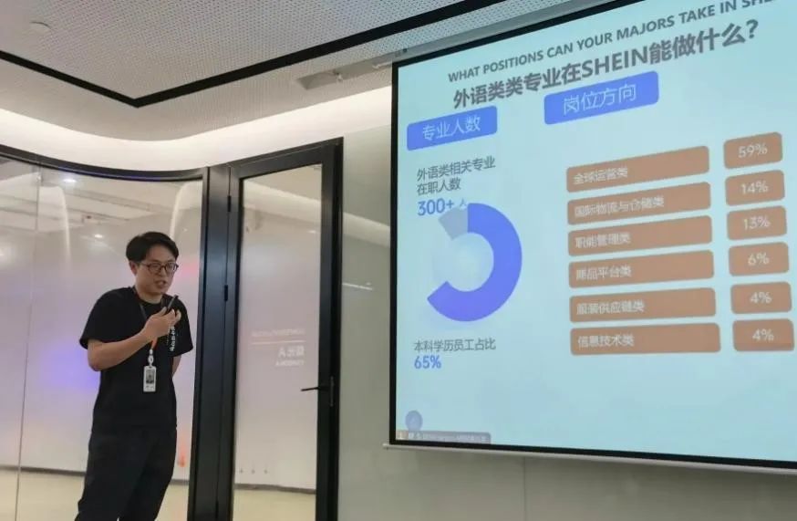 随着近年来跨境电子商务的快速发展,希音对跨文化沟通与外语专业人才的需求逐渐增加。此次参访活动目的之一即为同学们了解就业方向与技能培养提供帮助。