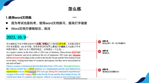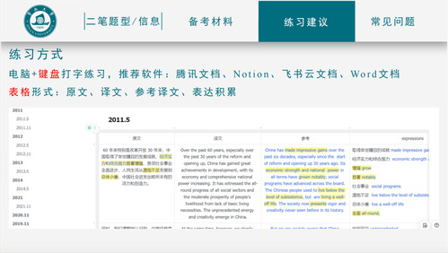 第二位进行分享的是罗嘉敏同学,她从二笔考试信息搜集、备考材料、练习建议和常见问题四个方面进行了分享。首先是二笔信息,罗嘉敏为我们简单介绍了二笔的考试题型、时间和地点等信息。其次是备考材料,罗嘉敏认为官方教材和历年真题是首选,此外我们还可以练习韩刚老师的《90天攻克二级笔译》和权威公众号上的讲解材料,把政府工作报告当作阅读材料也是不错的学习方式;关于工具书,罗嘉敏给我们推荐了《新世纪汉英大辞典》、《陆谷孙英汉大辞典》和《牛津高阶英汉词典》这三本认可度较高的字典。接下来是练习建议,罗嘉敏推荐我们使用“电脑+键盘打字练习”的方式,并给我们推荐了腾讯文档、Notion、飞书云文档、Word文档等软件,利用软件进行机考练习;在翻译练习的表格形式上,她推荐分成四栏,分别是原文、译文、参考译文和表达积累,便于一眼看出不足,比照好的翻译进行思考琢磨。最后是常见问题,针对批改自查,她推荐练习我们使用一些语法纠错软件如grammarly,并建议我们在练习时关闭自动纠正功能,练习结束再打开;针对练习方式,她推荐我们平时多使用键盘,提高打字速度,并且多翻纸质词典,熟悉查阅方式;针对复盘方式,她建议我们要注意语法、单复数、大小写错误、是否漏译或错译,并进行术语和高频词的积累,最好是建立一个文档专门积累CATTI常见表达,方便后续复习;针对练习频率,她表示自己备考前期是一天CE一天EC交替练习,备考后期每天CE、EC各一篇,争取至少一周完成一次3小时内2篇CE和2篇EC的练习;针对细节问题,她表示CATTI考试为扣分制,高深华丽的译文不会额外加分,微小错误反而会导致失分,因此通过的关键在于减少错误+风格恰当!