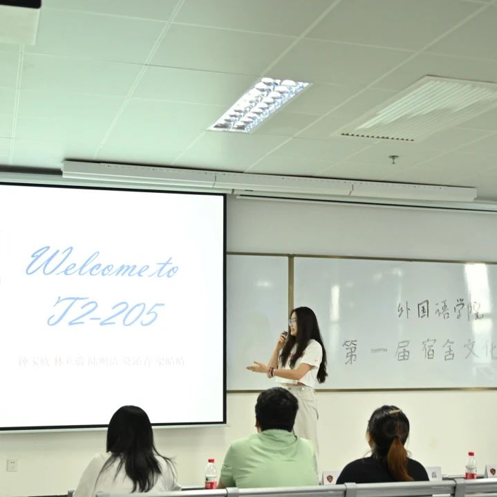 T3-911的五位来自大一的同学以“一见寝心,熔炼团魂”为主题展开了她们的宿舍答辩。她们在生活中互相帮助、彼此陪伴,共同布置整洁有序的宿舍空间;在学习上,她们寓学于乐,设置每周一的topic talk展现外院学子的认真与风采。最后她们通过定格动画与配音相结合的形式为我们带来了一场视听盛宴。