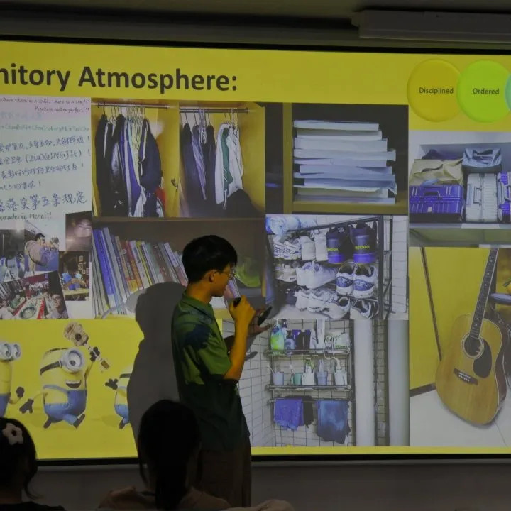 本次决赛展示主题为“我生活我骄傲,我宿舍我自豪”,内容主要围绕宿舍生活空间展示及生活氛围体现、宿舍学风建设、宿舍人际关系情况及宿舍美育开展。各小组可以通过PPT和视频的方式阐述创作理念,由评委提出问题的方式来完成答辩。