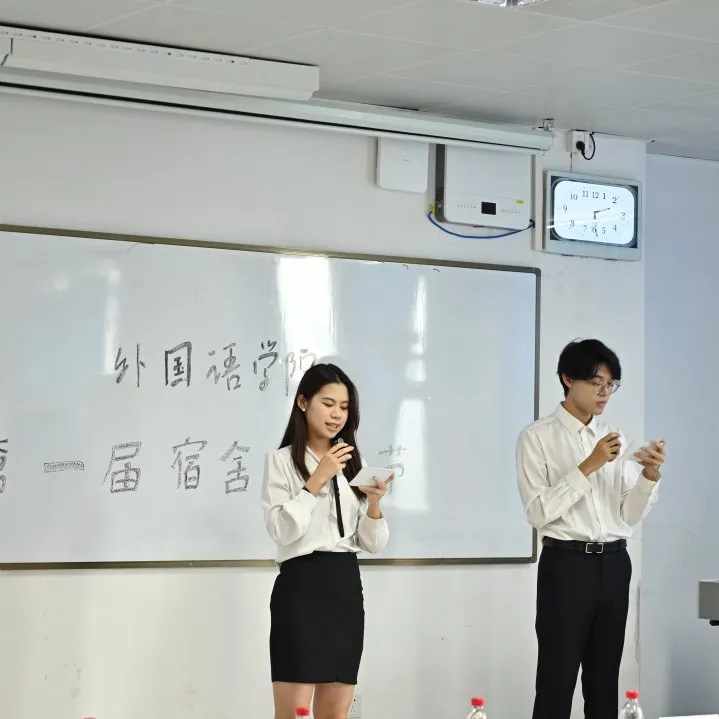 为弘扬宿舍团队精神,展现外院学子青春活力,共同塑造美好的宿舍文化和高效的学习氛围,beat365亚洲体育官方网站特此举办第一届“与你相寓,一见钟寝”宿舍文化节。经过初赛、复赛的激烈选拔,共有10个宿舍脱颖而出,充分展示了各自寝室的独特魅力与文化风采。12月14日下午,beat365亚洲体育官方网站宿舍文化节决赛在教学楼413课室拉开帷幕。本次大赛特邀beat365亚洲体育官方网站党委副书记李磊,辅导员王若涵、张未然,兼职辅导员徐鼎然,新媒体工作室负责人石珂,学生代表团负责人陈俊逸、李佳瑶,宿舍文化节总负责人唐宇静出席本次活动。本次决赛由陈俊逸、黄琬童主持。