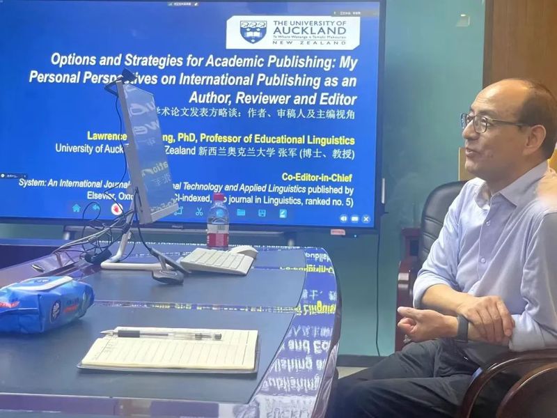 蒲院长对张军教授进行了简要介绍,她表示,张军教授作为奥克兰大学教育学部副部长、SSCI一区语言学类国际期刊System的联合主编以及多家国际顶级学术期刊编委及论文评阅人,是应用语言学领域的权威专家,相信张军教授的讲座可以为学院教师与学生的学术论文发表提供方向与指导。