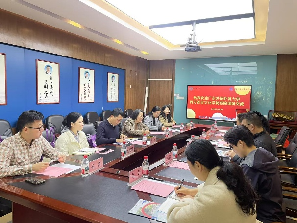 4月2日上午,广东外语外贸大学西方语言文化学院党委书记王秀民、副院长陈星、党委副书记魏少娟及学工团队一行来beat365调研交流。学院党委书记陈文举、党委副书记李磊、副院长朱红强、教师及辅导员代表出席座谈会。