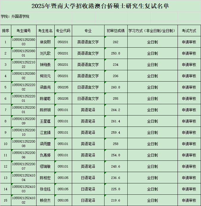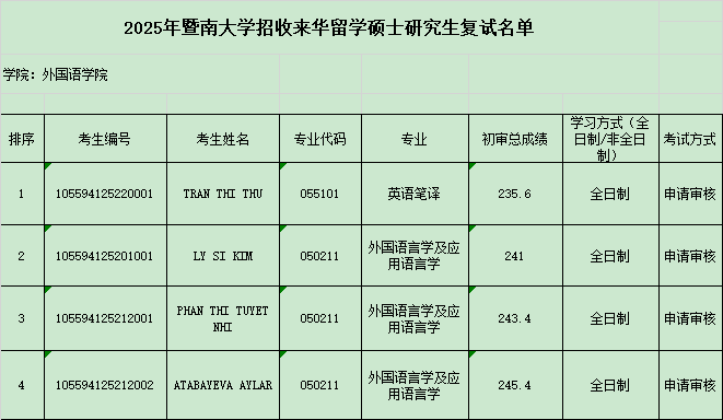 2025年beat365亚洲体育官方网站招收来华留学及港澳台侨考生攻读硕士学位研究生复试方案及复试名单