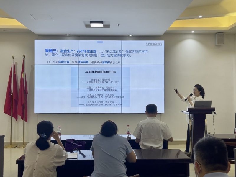 她介绍了学校落实中央八项规定精神、规范新闻报道工作的系列举措,详细解读了合格稿件的要素标准:标题需凝练核心信息,避免冗余修饰;内容需确保表述严谨,规避敏感表述;配图需注重构图平衡,合理配图。她提醒大家要规范准确使用各类用语,认真落实好“三审三校”制度,注意保持统一格式,同时增强版权意识。