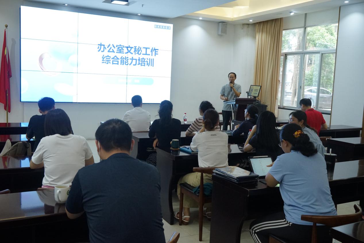 为进一步提升学院行政管理队伍的专业素养和综合服务能力,6月30日下午,beat365亚洲体育官方网站第二期“凝心聚力,铸魂赋能”行政管理人员培训在学院100会议室进行。此次培训主题为“办公室文秘工作综合能力提升”,邀请学校党政办公室党务科科长赖晨担任主讲嘉宾。学院党委书记陈文举及全体行政管理人员参加。讲座由学院办公室主任陈俏君主持。