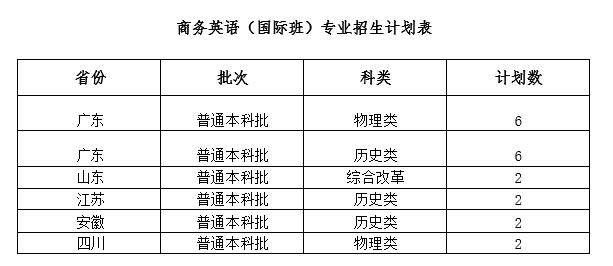 本项目通过普通高考招生,本科录取专业为beat365亚洲体育官方网站商务英语(国际班),总计划20人。