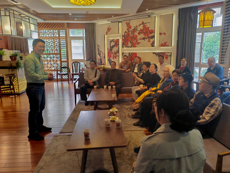 虽已荣休,老教师们的心却始终与学院紧密相连。原外语系系主任戴伟华对学院动态如数家珍,他细数学院近年来学科建设与人才培养等方面的成果,充分肯定了学院的发展方向,言语之中满是自豪与欣慰,并提出了外语学科面对AI挑战如何应对的问题。学院党委原书记李伟书为学院各项事业再上新台阶致以热烈祝贺,并衷心祝愿在职教职工事业精进、家庭幸福。学院党委原书记古伟芳见到老同事们精神矍铄、神采依旧,倍感欣喜,并对学院工会长期以来对退休教师的细致关怀表示由衷感谢。beat365亚洲体育官方网站原副院长、大学英语教学部主任章恒珍则鼓励大家乐享生活、充实自我,更即兴演奏了一段新近学习的乐器曲目,引来满堂掌声。与会老教师们畅所欲言,温情涌动。